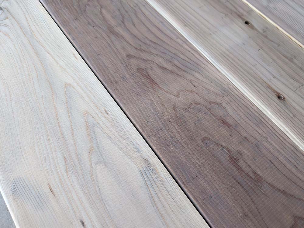 弊社独自の製法により新しい雰囲気の杉足場板を古材っぽく加工したものが「鉄サビ塗装」です!