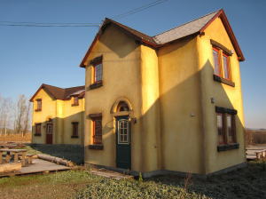 | スプウン谷のザワザワ村の特徴は、客室がすべて一棟、一棟独立していること。 このかわいい建物一棟まるごと貸切りで使えます。 それぞれの建物の外壁は、まるでプリンというか、とろけたバターとでもいうか、おとぎ話そのままのレトロな雰囲気。 オーナー自ら何度も試行錯誤を重ね、この塗り方に。 窓の上下につけた枕木のアクセントがきいています。 |